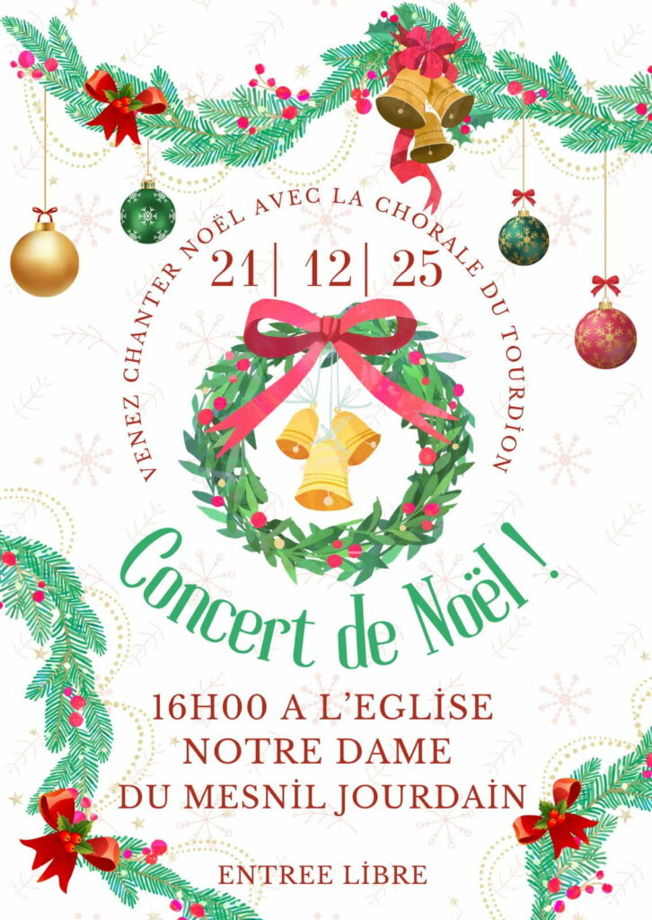 L’association du Patrimoine du Mesnil-Jourdain avec la participation de la chorale “Le Tourdion” organise un concert de Noël le dimanche 21 décembre à 16h00.